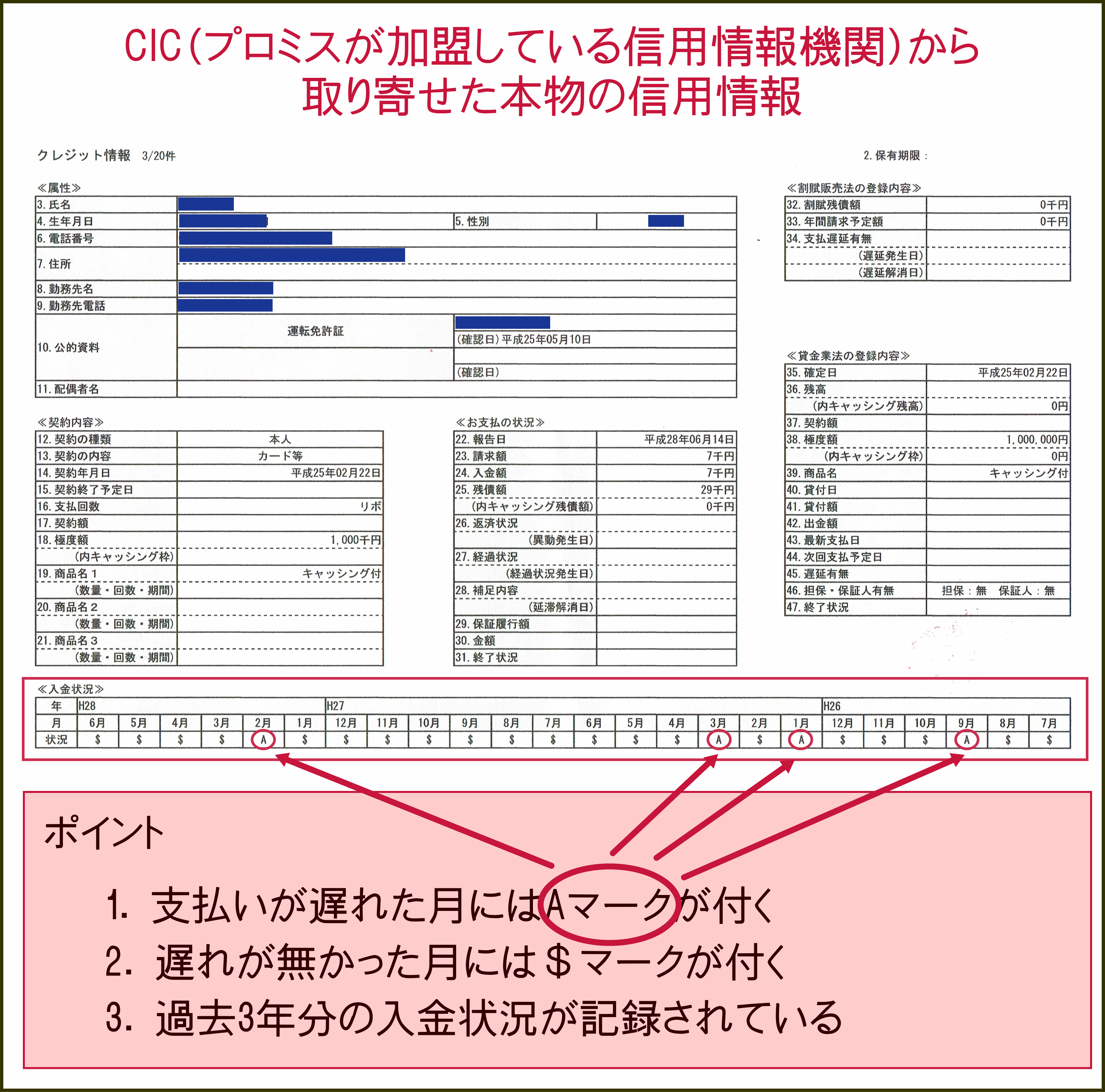 プロミスなどのいわゆる貸金業者は、月に1回(借入金が5万円以上ある場合)、信用情報機関から利用者の信用情報を取り寄せ信用調査を実施しているですね。